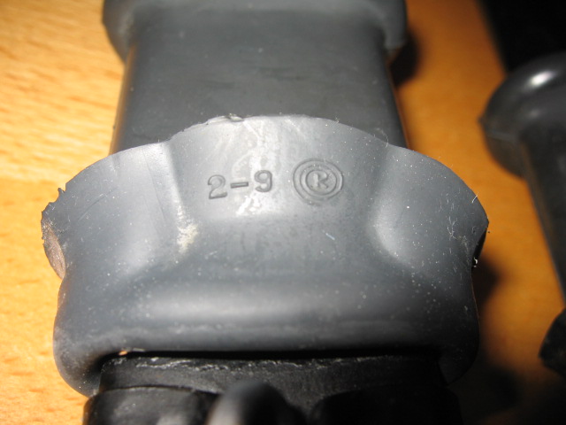 Here are some molded markings from later Russian insulators. They are all similar with small differences in size and position. With the exception of the very early ones most Russian insulators have no markings. The ones pictured below are usually found on scabbards that have been reworked and are believed to have been supplied under contract as replacements during inspection and rework. Mike