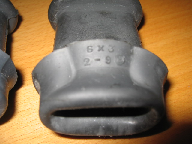 A new Russian Kalashnikov reference book mentions an early version of the 6X3 Type I insulators. It is unmarked and slightly longer than the later versions. It was used only on the early scabbards without the scabbard stop welded to the side of the scabbard body. These longer variations were removed and replaced by the shorter standard versions during subsequent rework/repair. Pictured below with my marked Tula insulators. I acquired this item on a reworked 6X3. It was dirty, discolored and slightly damaged. I removed it and replaced it with a standard Russian insulator. It was a different color and I did not know what it was. I had not noticed that it was longer than the others. Mike