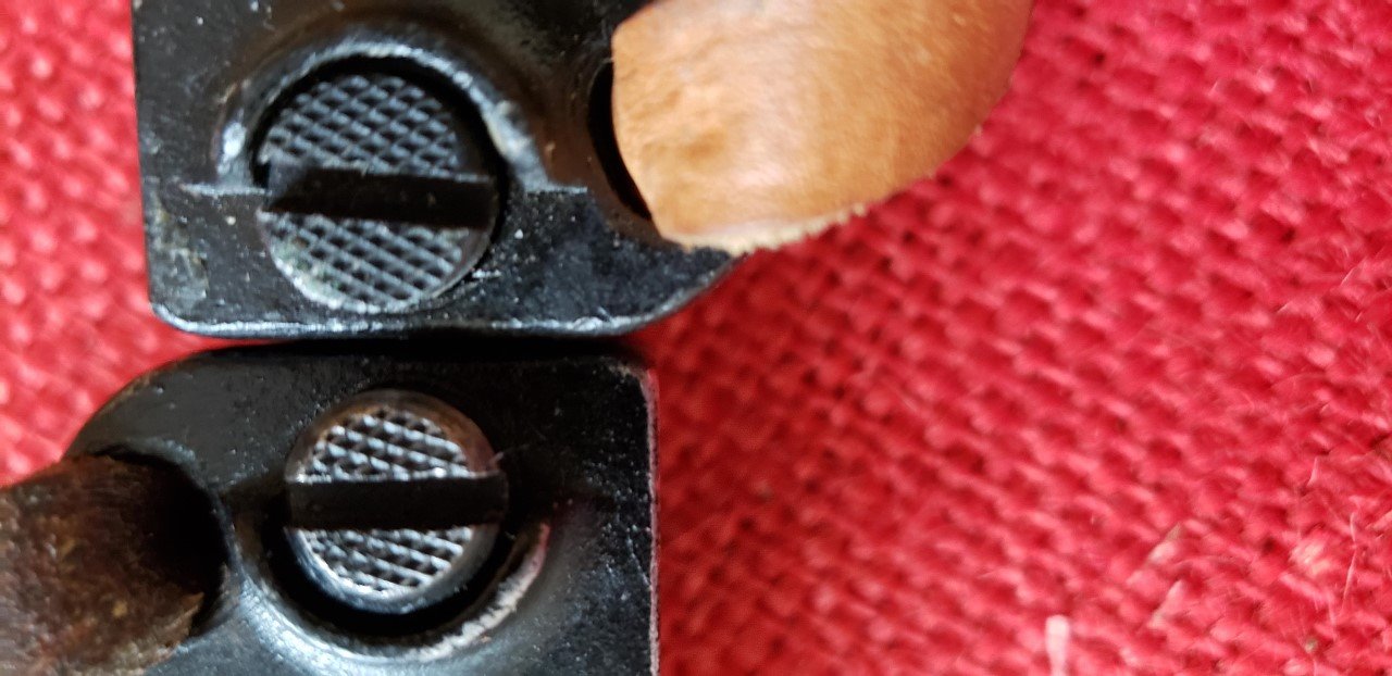 Here is yet another minor variation to look for on Russian AKM 6X4 bayonets. Some of the catch release buttons have a beveled edge at the end. The ones with the beveled edge seem to be somewhat rare. I do not know when or why they were used, but they can be found on both Izhevsk and Tula bayonets. Perhaps they are a repair or replacement item!? There is an illustration showing both versions in a recent Russian reference book. Mike