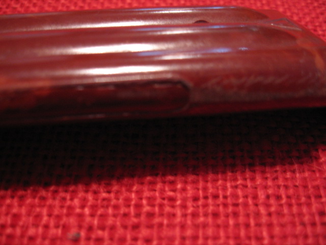 I once did some consulting work for a company that made brushes and razors. They used injection molding to make handles and other parts. I do not know the exact procedure the Russians used but the process is generally the same. The theory of the "window" company used old reworked arsenal molds comes from the crude details on the "window" scabbard bodies. Note your 1st picture and the amount of flashing or excess material that has been trimmed/cut off. All the molded scabbard show areas on the side seams of the mold halves that have been ground off. However with age and usage the leakage of material becomes excessive and the molds are replaced. This leaking is a cause of the indention on the one side. Mike