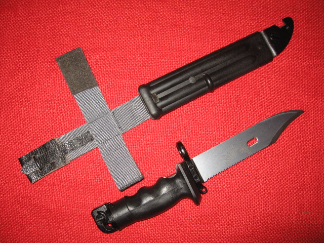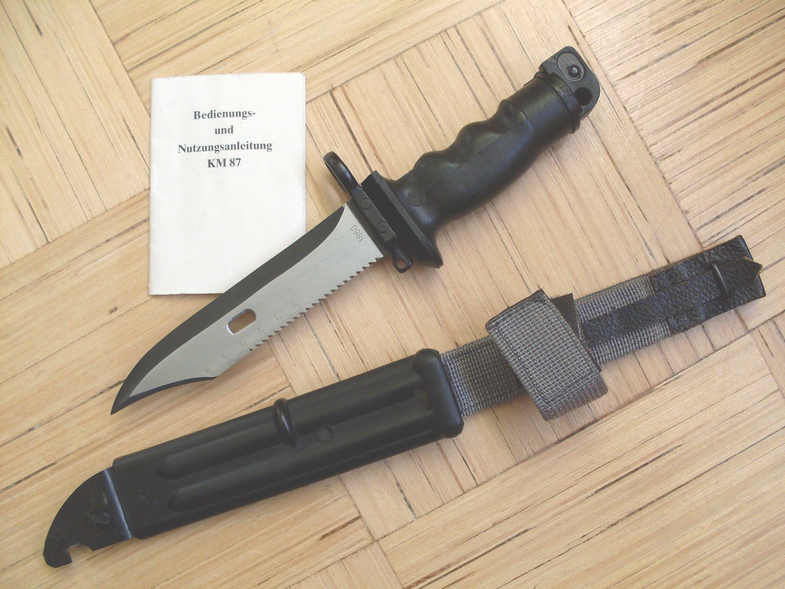 It has been brought to my attention that this forum does not have a post about the East German, (DDR), KM87 Bayonet & Scabbard. This unusual and rare bayonet is to me the ultimate Kalashnikov Bayonet. It has lot's of extra features and is a survival weapon as well as an extremely well made bayonet and scabbard. Here are some pictures of the one in my collection. Mike
