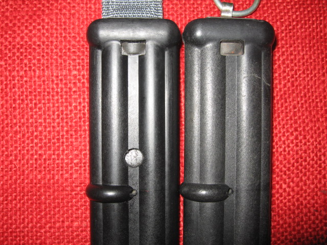 Here's a picture from another site that illustrates some of the minor variations in the KM87 hanger. Note the light colored Velcro patches and the smooth black leather. Mike