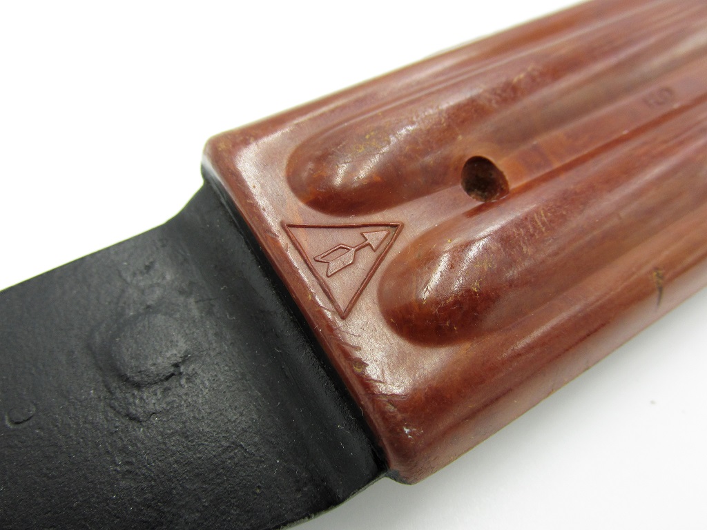 Internal Russian military inspection, repair and refurbishment was and is constant. An individual bayonet or scabbard could be repaired or replaced due to loss or damage at unit level or just turned in for reissue, they are constantly being inspected, repaired and reworked, As they become obsolete and are replaced they are reworked to minimum functional standards. They then may be sold as surplus or placed in storage as reserves. In the case of the AKM bayonets and scabbards, both 6X3 and 6X4 versions have now become subsequently obsolete and replaced by the AK47 6X5 bayonets and scabbards. These 6X3 and 6X4 surplus bayonets were often mixed during rework operations and storage. Again with the possibilities of mixed parts and components.