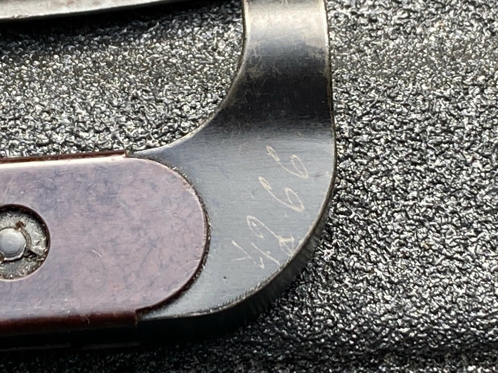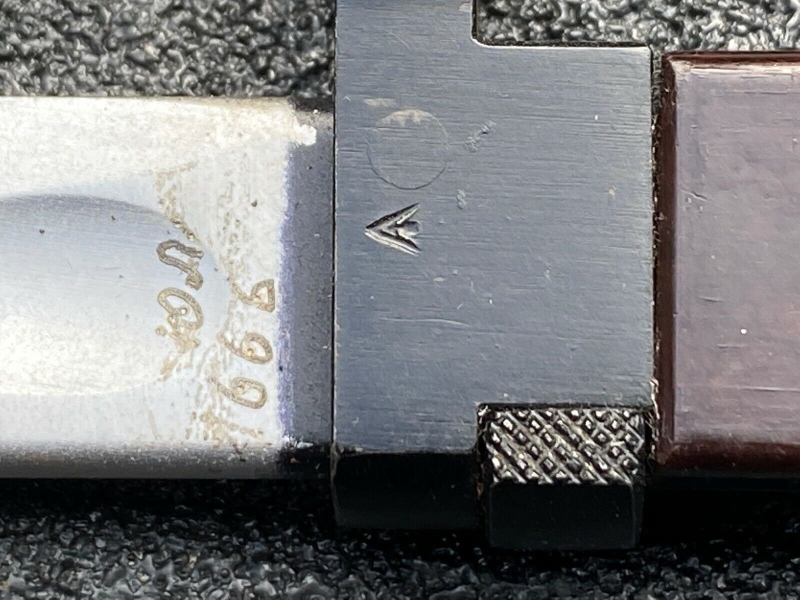 5. New hand engraved markings/numbers have been added to the left side of the blade ricasso. This style and placement of numbers is new to me. Perhaps indicating ownership and issue by a different country?
