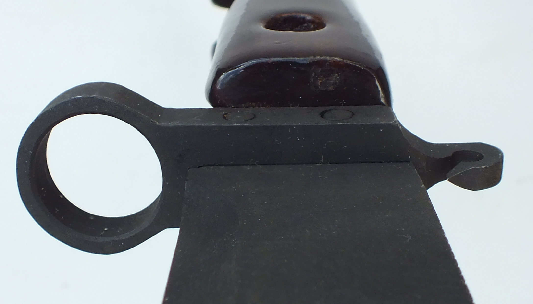Wow ........definitely rare! I have never seen one similar before. Looks like a one of a kind, hand made item to me. Reminds me of a Khyber Pass hand made copy. EVERYTHING on both the bayonet and scabbard appears to be hand made and assembled. ALL the details on ALL individual parts are irregular with crude machining and finish. Tool marks, even vise marks, are visible on most parts.