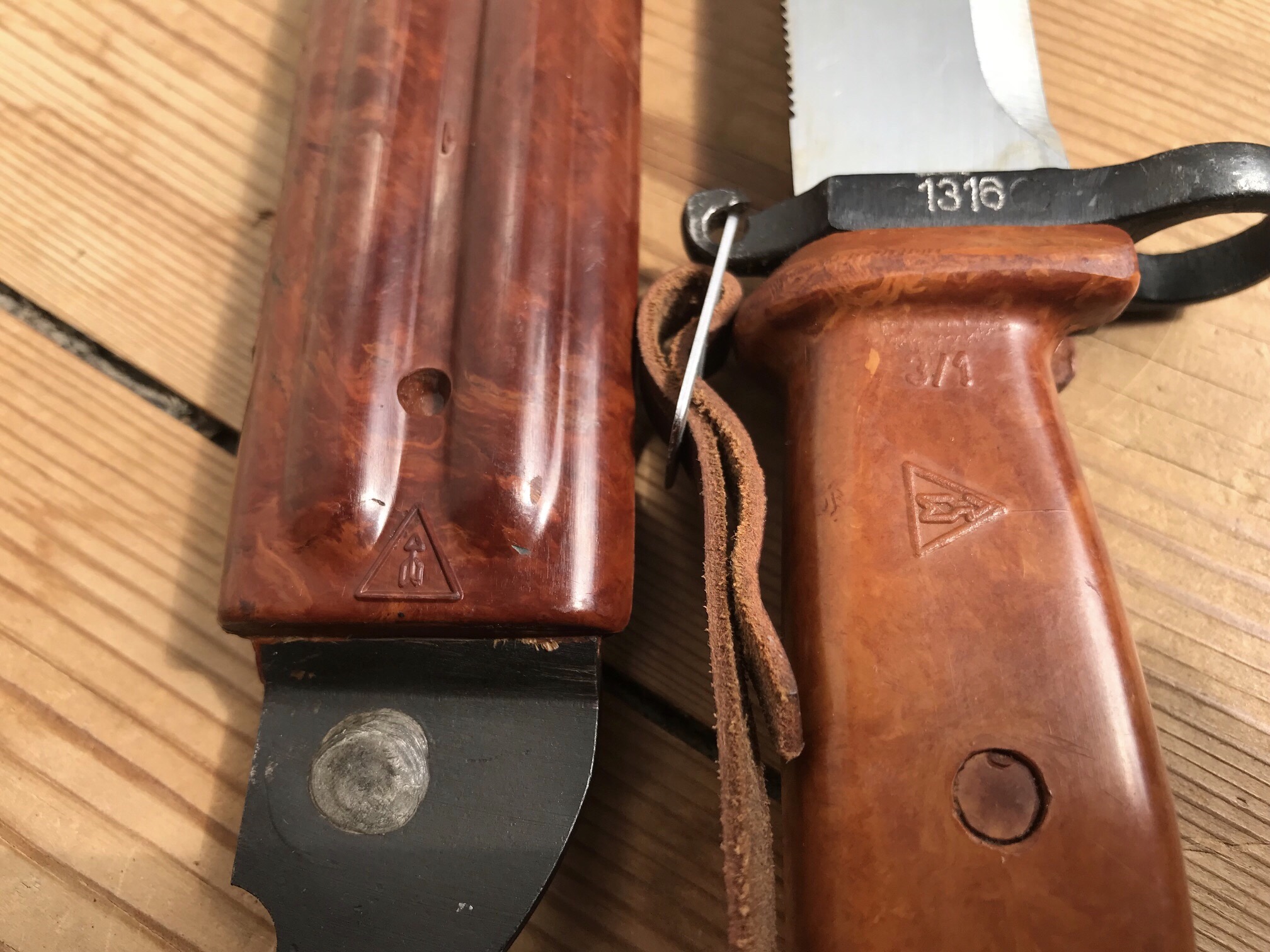 this one came from the US. It could potentially have come from the AoA thing. A reseller from lithuania bought about 10 pieces from the US. All with the double cugir logo. He told me he missed some with letters on the scabbard. I was also told that these had been in Romanian armory storage for all these years and then sold with romanian rifle kits. Production year were determined to be 1992.