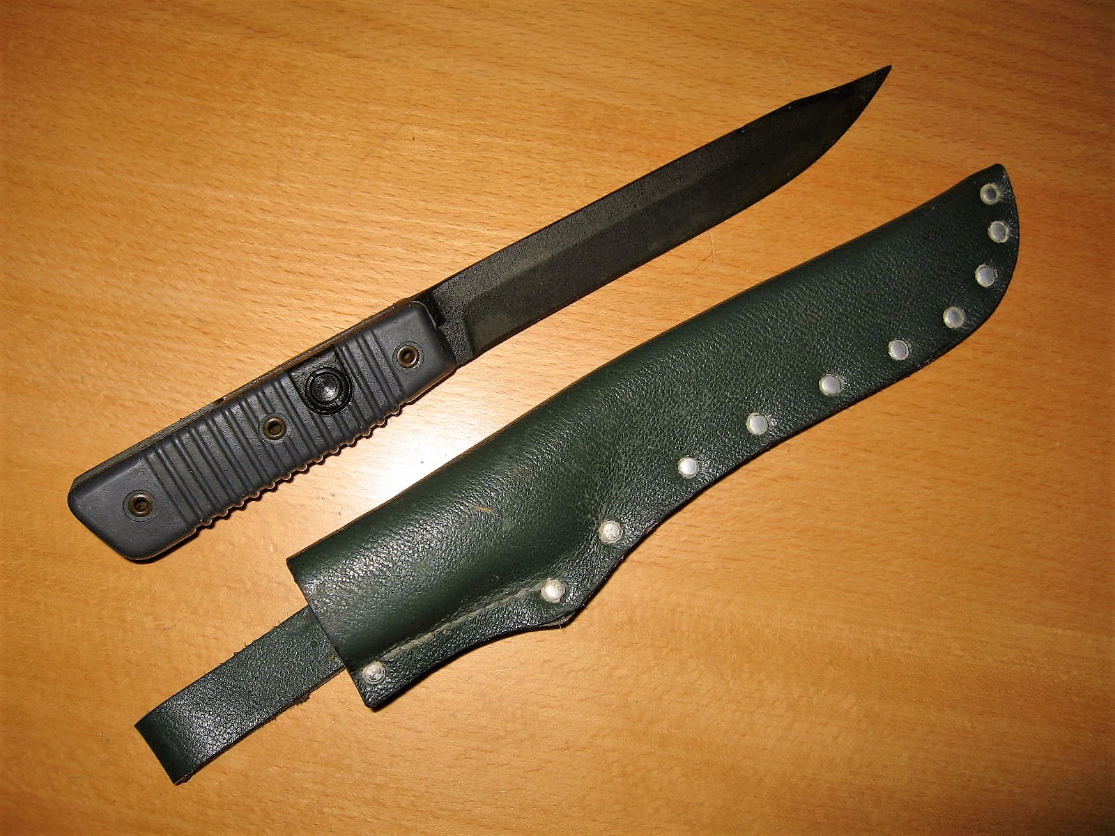 Fiskars also makes a hunting knife of the same design with a wider blade. Another possibility for the origin of the scabbard.