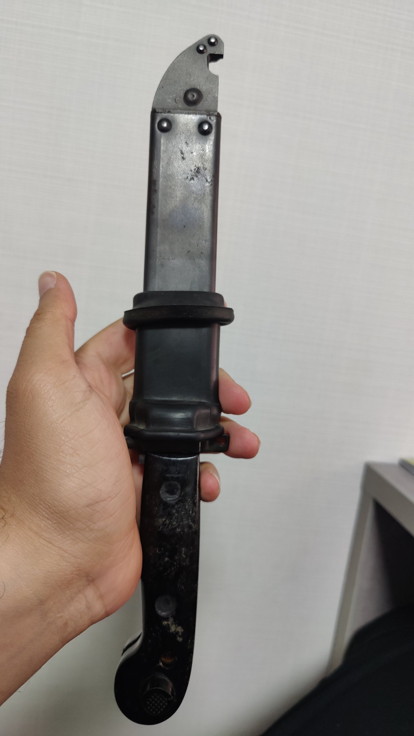 It is an East German, (DDR), AKM 6X3 Type l bayonet and scabbard, (Modell 1959). It Appears to be in Good condition with matching numbers. Missing a belt hanger and wrist strap to be complete. These were produced from late 1962 to 1979.