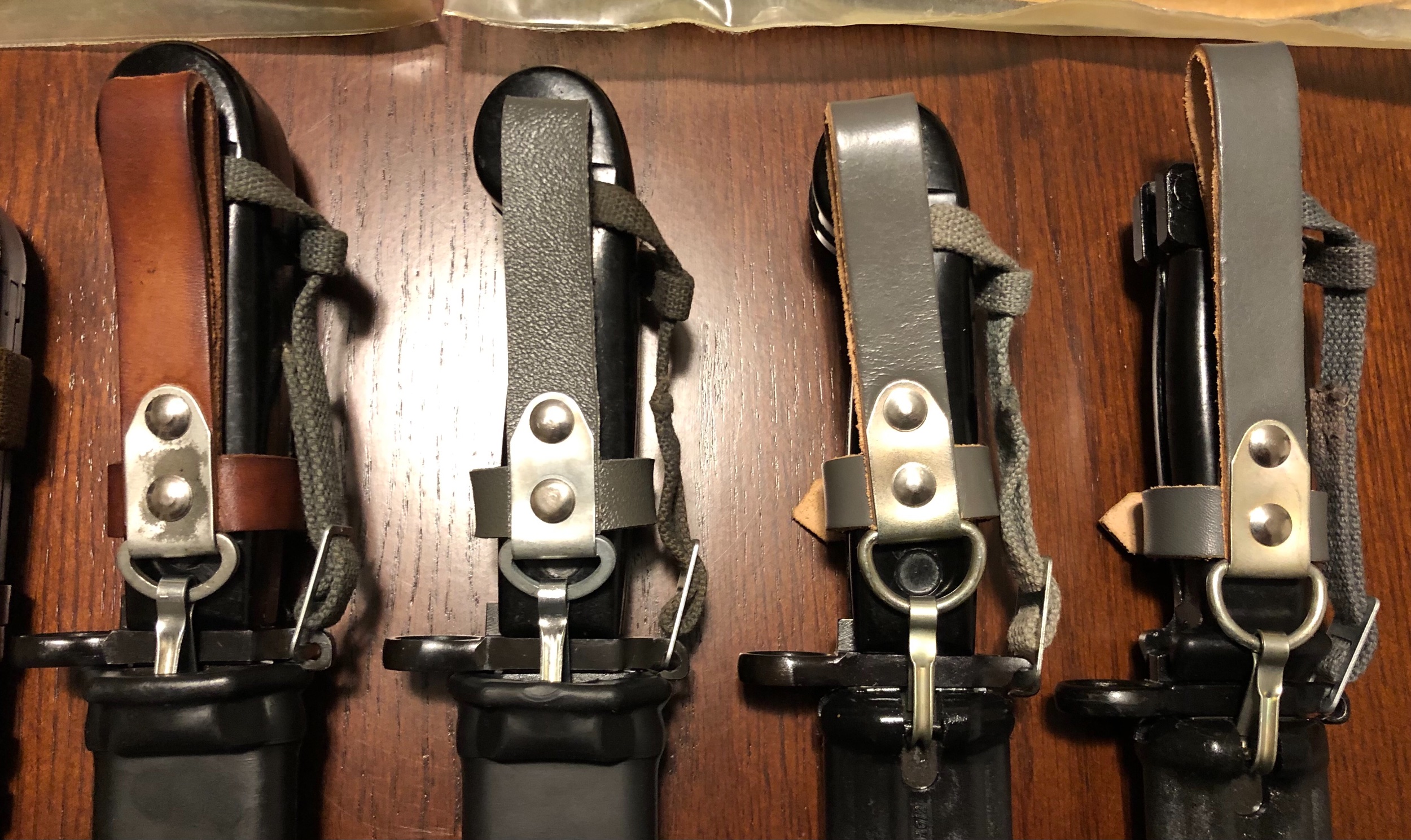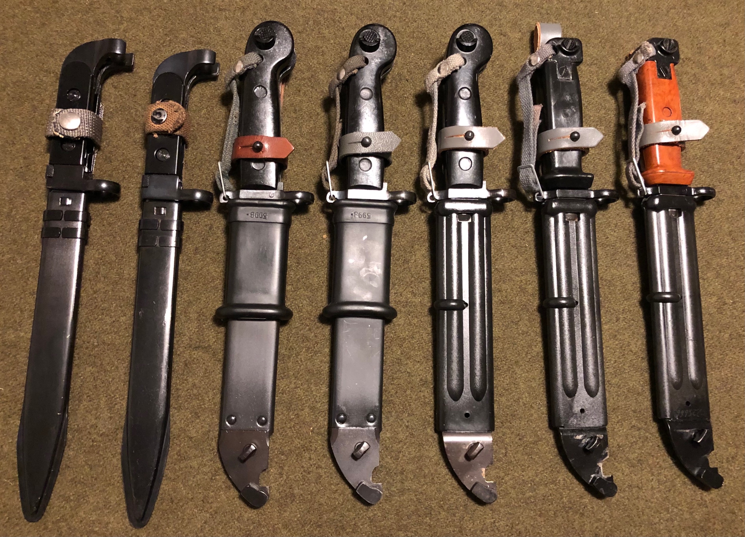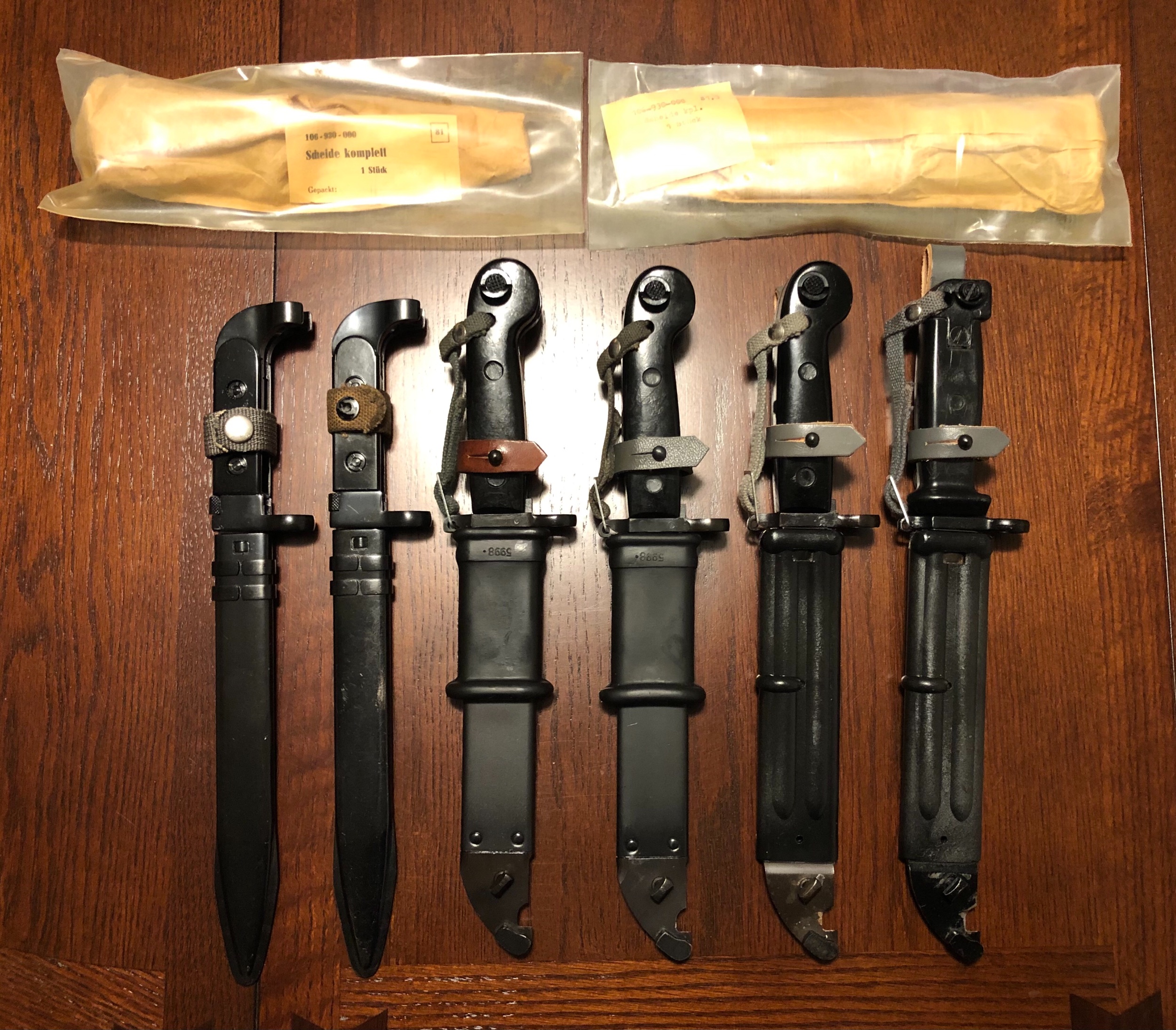 Included above the bayonets are sealed replacement scabbards.
