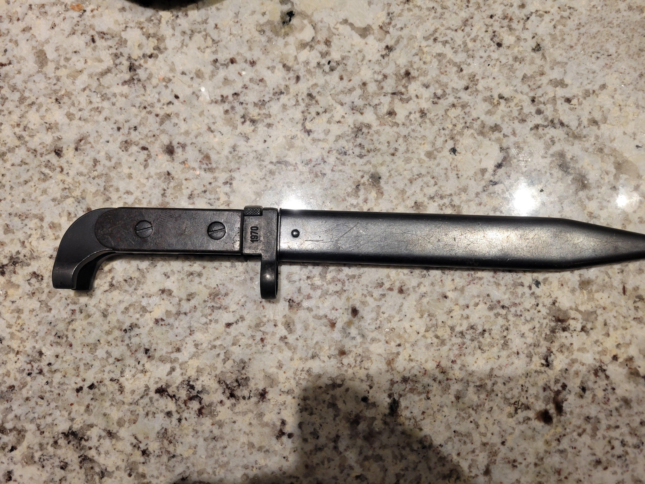 FYI. 1970 marked bayonets had no consistent numbering or placement. No one seems to know where or when they were individually numbered. Many have no numbers, Unissued? Mike