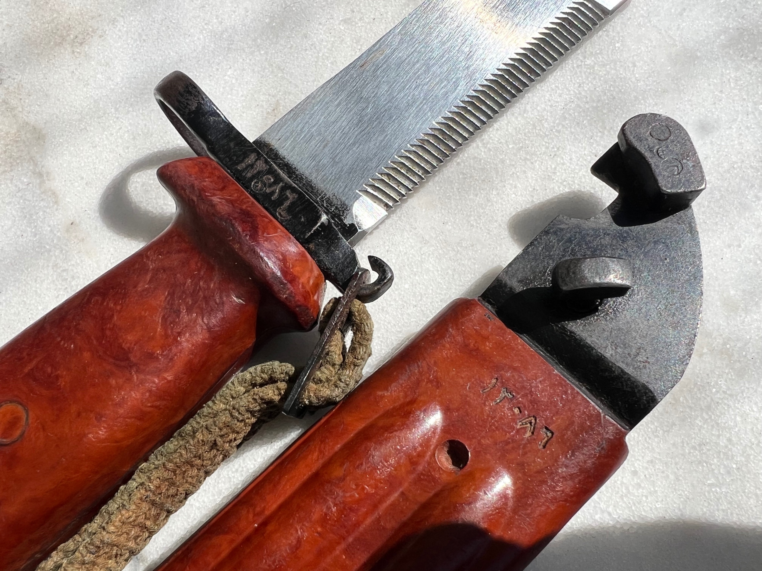 As a follow up question, why did you post David David’s pictures? Just to show evidence of similar “battle field pickups”? Difficult to try to identify without seeing other markings. All I see are similar numbers on the scabbards. Who made them? Who owned and use them? No evidence of manufacture. Look closely at the sawteeth on all 4 examples. Different machining and the one left angles the wrong way! At least yours appears to be Russian made.