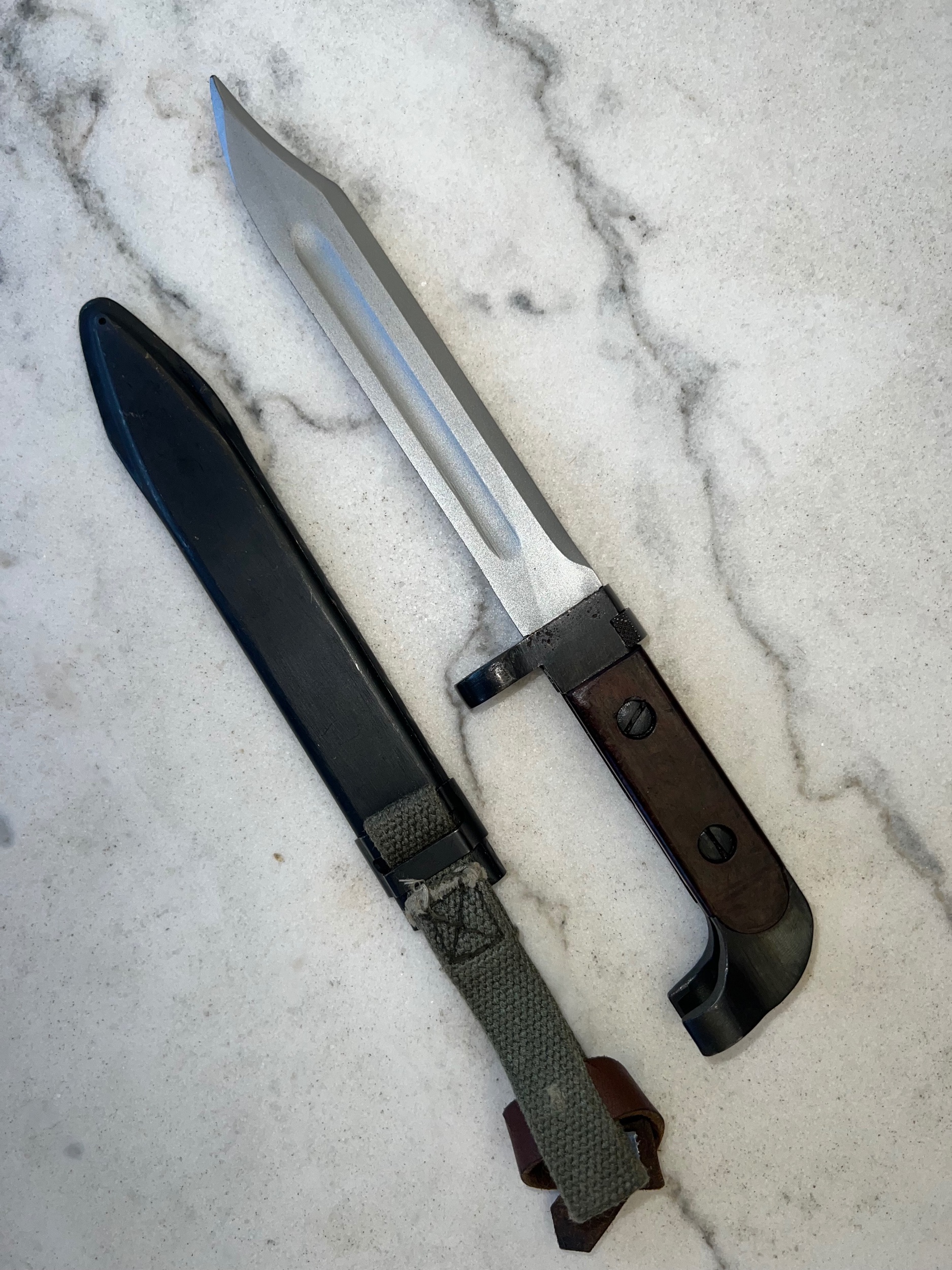 I also would like to have one of the more common ones to display and study. That would be the one with the AK-47 style hilt and the newer style AKM bowie blade. At least there seem to be a few of these in circulation and they are pictured In several references. The second reversed style, with the Ak47 blade in an AKM hilt, seems to be a one of kind sample. For me, the jury is still out on this one. It doesn't seem logical or practical to me. Mike