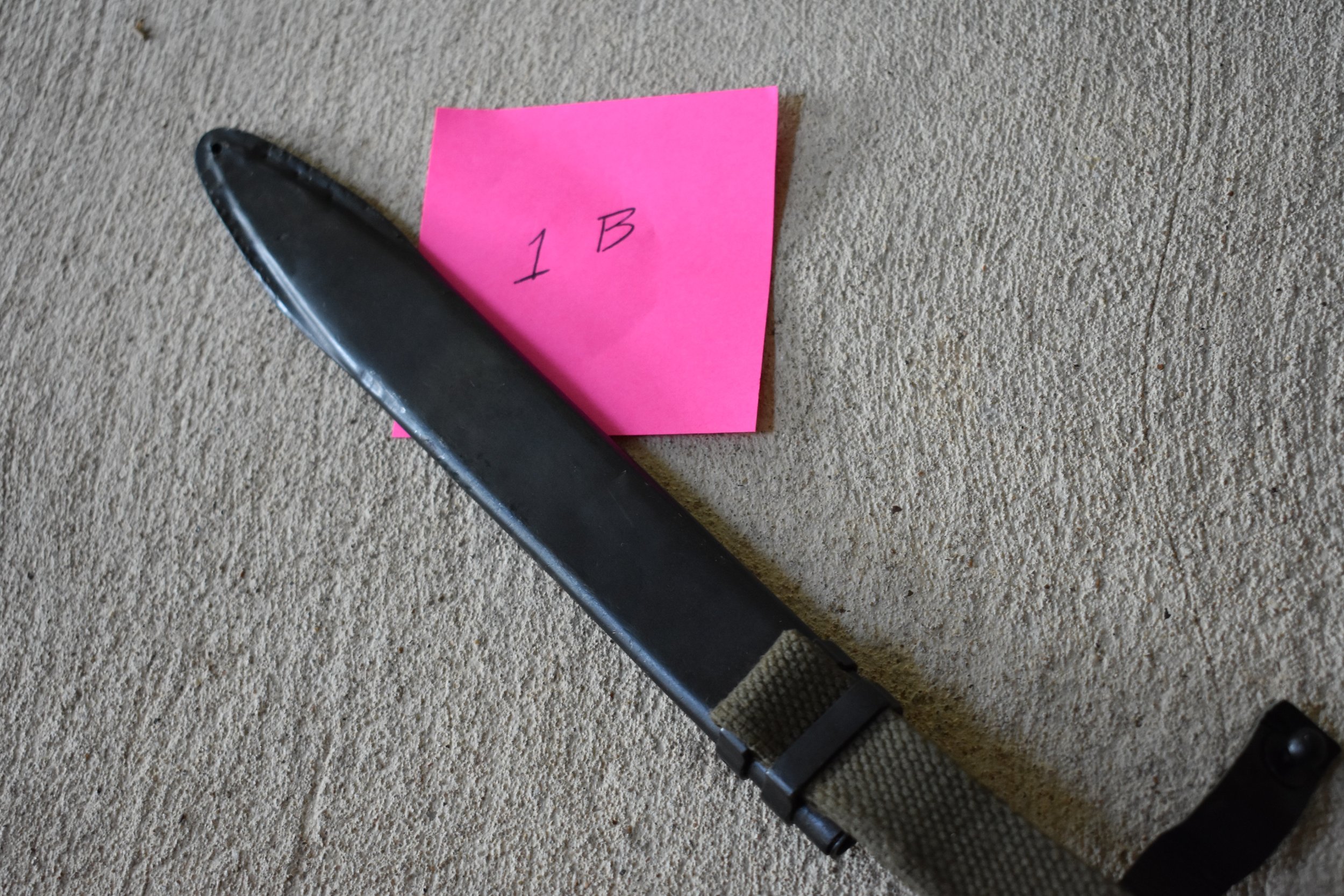 this one came with what looks like a bulgy scabbard and the bayo looks blued