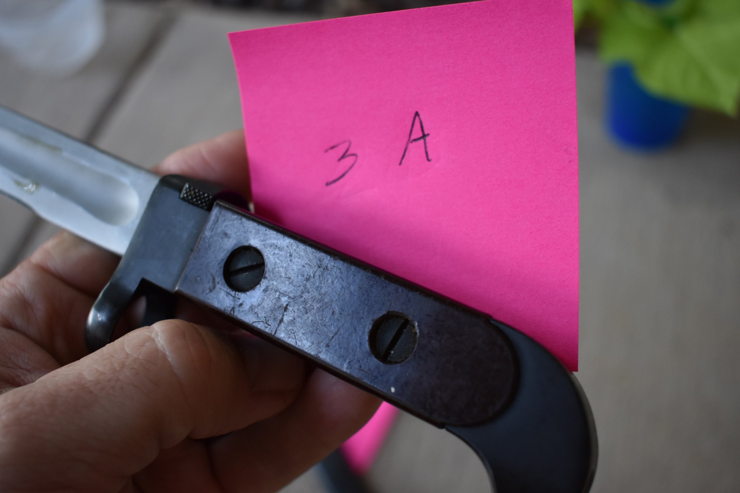 thanks mike! on the bayo labeled 2A, the grip panels appear to be made of wood and is not the chinese color or pattern wood. are there any bakelite grip panels that had woodgrain patterns like this? unlike the AKM's, do these simply unscrew? if so i guess i could just remove and inspect/test the back side