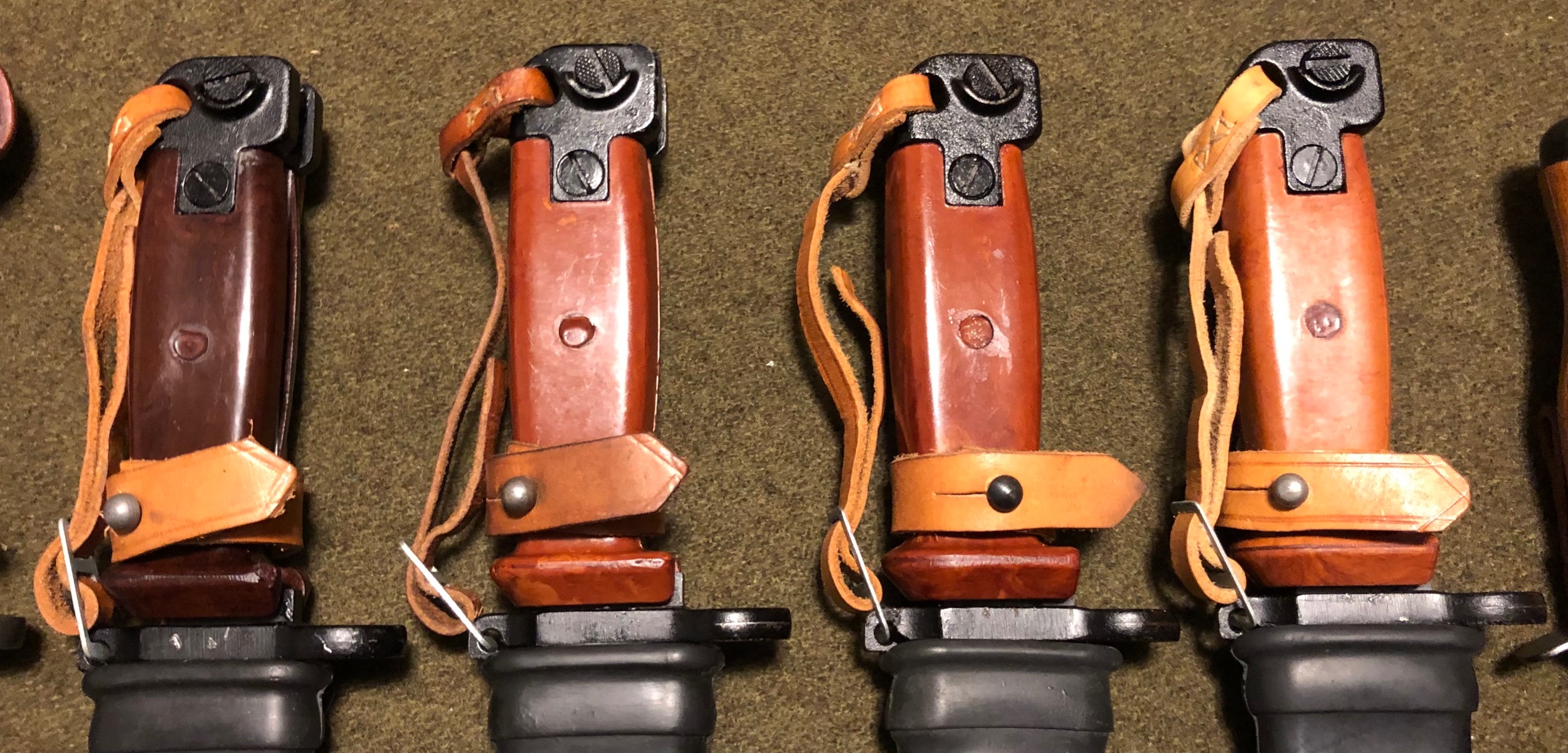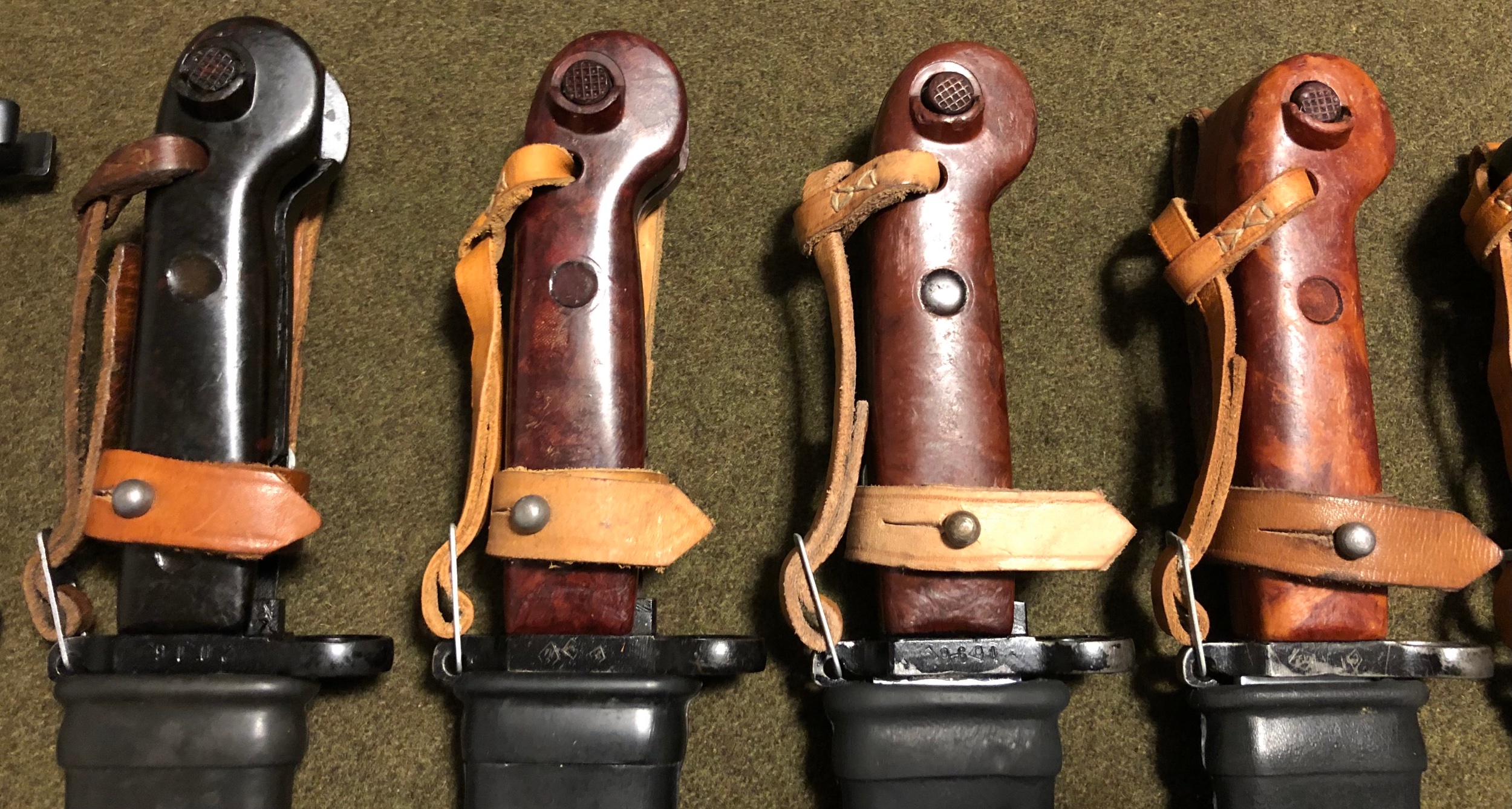 Here is my current lineup of Polish Bayonets . I love the different variations of the grip color.